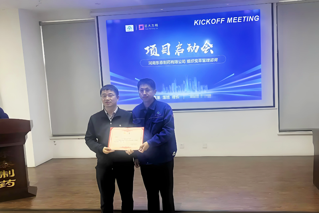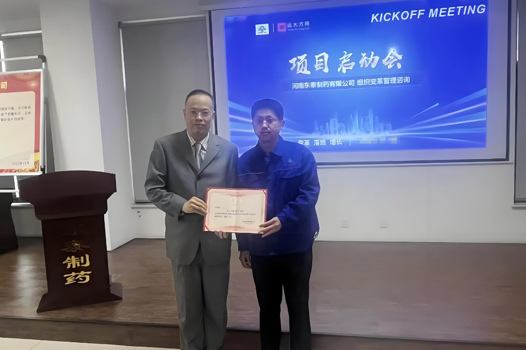 近日,河南東泰制藥有限公司(以下簡(jiǎn)稱“河南東泰制藥”)攜手遠(yuǎn)大方略啟動(dòng)《組織優(yōu)化管理變革》咨詢項(xiàng)目,構(gòu)建更加科學(xué)合理的組織架構(gòu),提升跨部門協(xié)作能力,完善薪酬與績(jī)效體系,充分激發(fā)員工的工作積極性與創(chuàng)造力,全面優(yōu)化運(yùn)營(yíng)流程,降低內(nèi)耗、提升效率,構(gòu)建能夠支撐企業(yè)持續(xù)發(fā)展的組織能力,為企業(yè)的長(zhǎng)遠(yuǎn)發(fā)展奠定堅(jiān)實(shí)基礎(chǔ)。